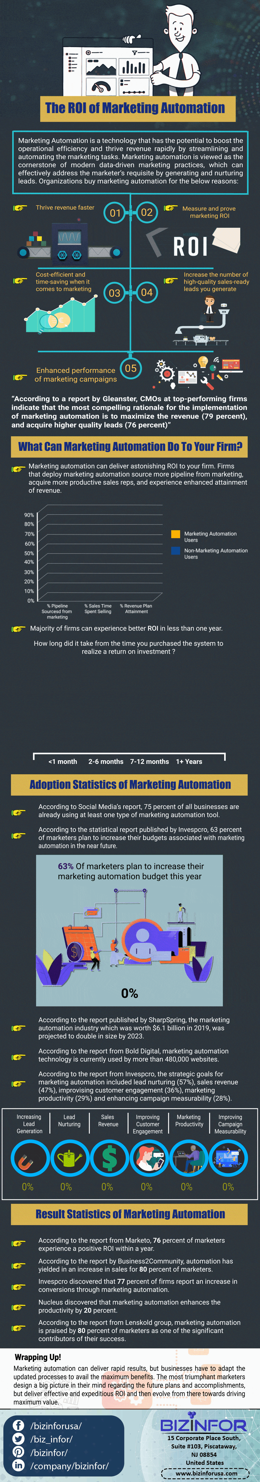 - According to the report from Invespcro, the strategic goals for marketing automation included lead nurturing (57%), sales revenue (47%), improvising customer engagement (36%), marketing productivity (29%) and enhancing campaign measurability (28%).